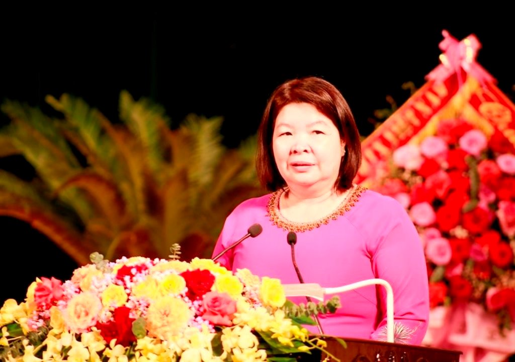 | Chủ tịch Liên minh HTX Việt Nam Cao Xuân Thu Vân phát biểu tại buổi lễ. |