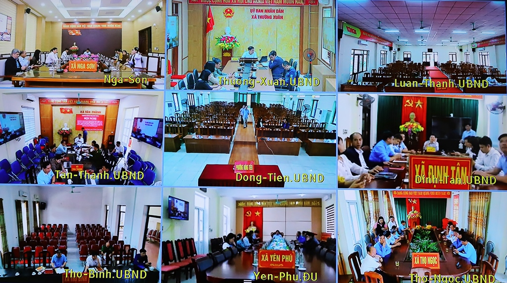 Toàn cảnh hội nghị tại các điểm cầu trực tuyến trên toàn tỉnh.