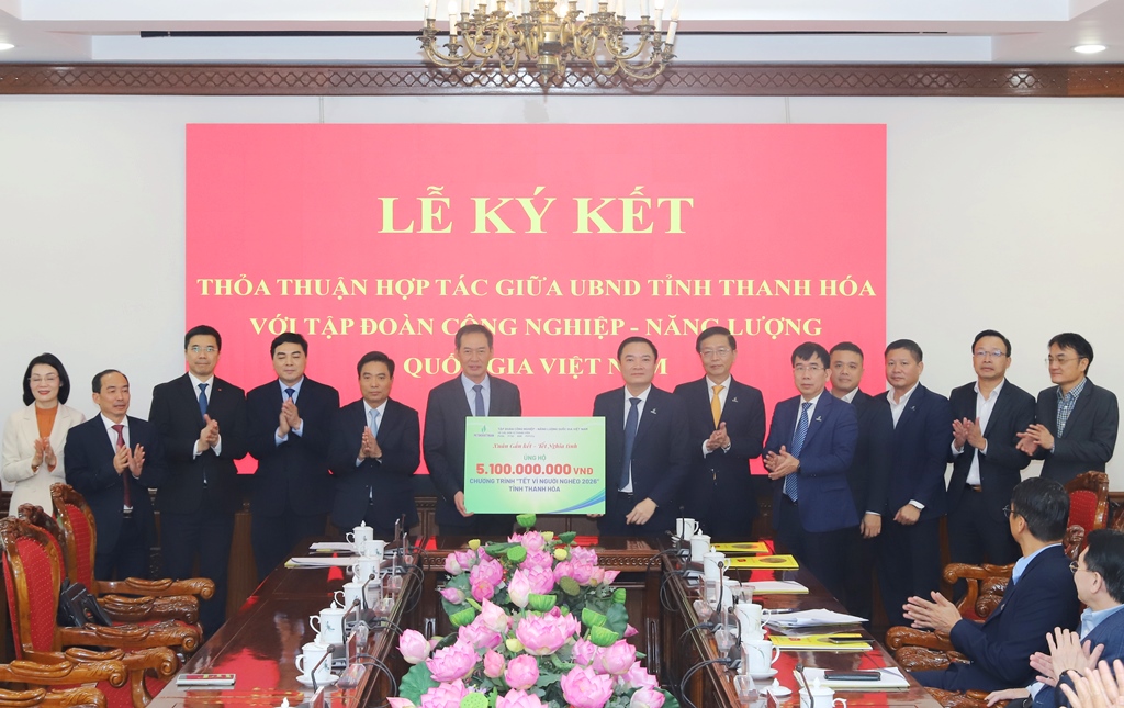 Tỉnh Thanh Hóa ký thỏa thuận hợp tác với Tập đoàn Công nghiệp - Năng lượng Quốc gia Việt Nam(05/02/2026 10:01 SA)