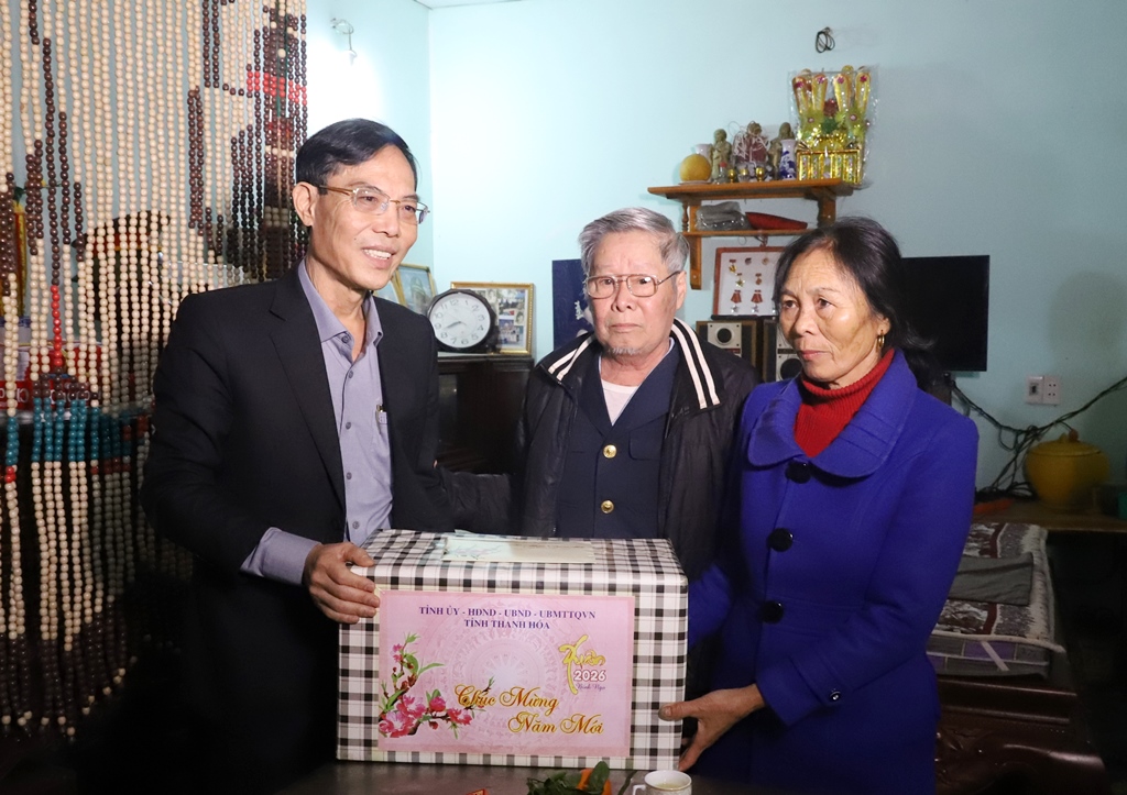 Thăm, tặng quà, trao Thiệp chúc thọ của Chủ tịch nước cho cụ Lê Thị Kiêu, tròn 100 tuổi (thôn Minh Sơn, xã Nông Cống); thăm, tặng quà gia đình bà Ngô Thị Vút (thân nhân liệt sĩ, thôn Lê Xá 1, xã Nông Cống).