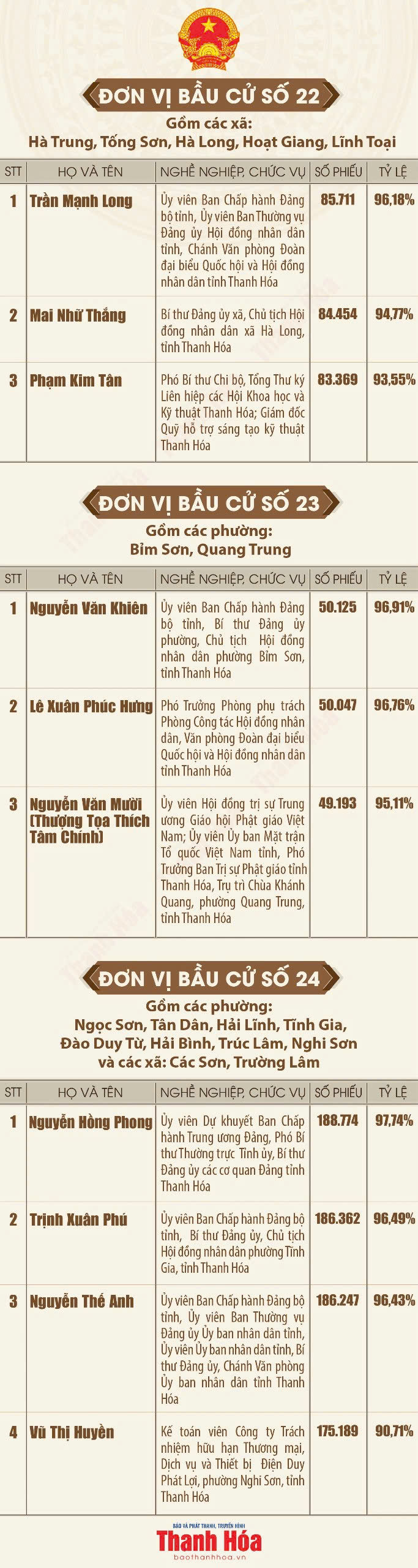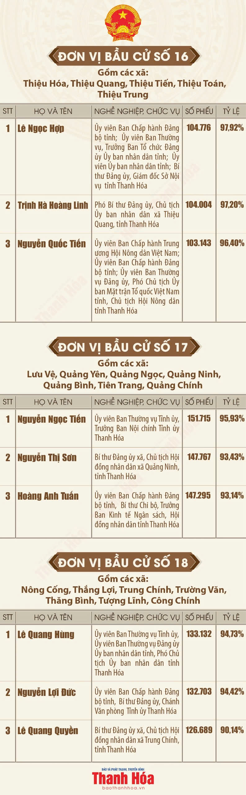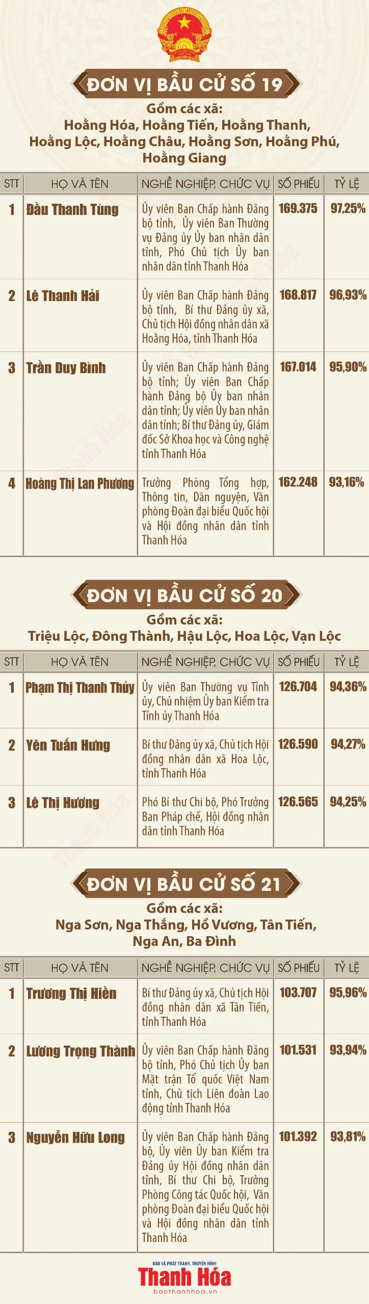 Danh sách những người trúng cử đại biểu Hội đồng nhân dân tỉnh Thanh Hóa khóa XIX, nhiệm kỳ 2026...(19/03/2026 2:20 CH)