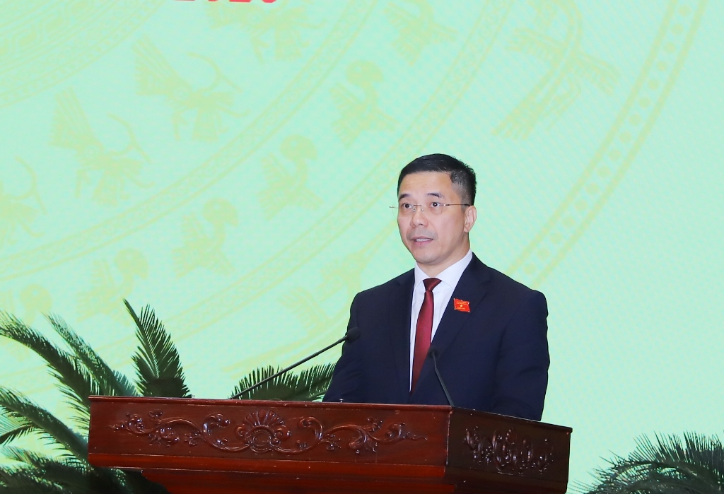 | Phó Chủ tịch HĐND tỉnh Nguyễn Quang Hải phát biểu tại kỳ họp. |