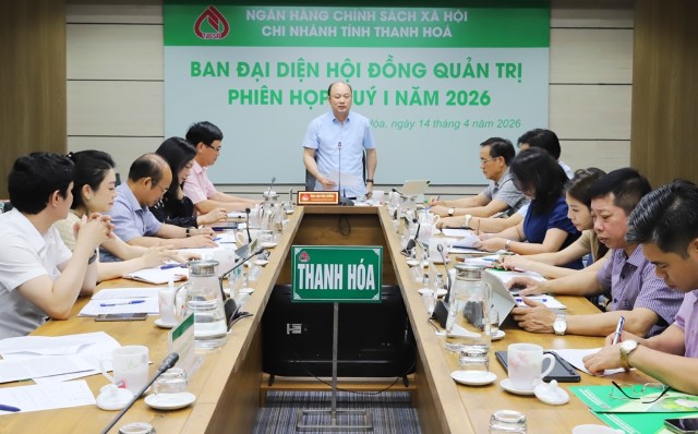 Chiều ngày 14/4/2026, Ban đại diện HĐQT Ngân hàng chính sách xã hội tỉnh Thanh Hoá đã tổ hội nghị đánh giá kết quả hoạt động quý 1, triển khai nhiệm vụ trọng tâm quý 2 năm 2026. Đồng chí Cao Văn Cường, Tỉnh ủy viên, Phó Chủ tịch UBND tỉnh, Trưởng Ban đại diện HĐQT Ngân hàng chính sách xã hội tỉnh...